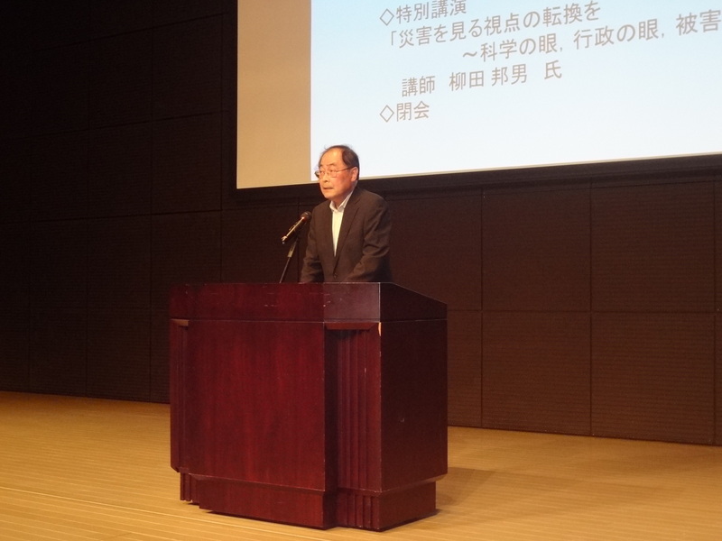 その後、柳田邦男氏から「災害を見る視点の転換を~科学の眼,行政の眼,被害者の眼~」というタイトルで特別講演を頂き、350名を越える一般・学生の方々に参加して頂きました。