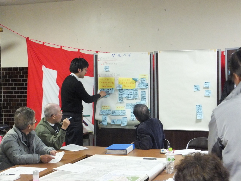 そこで、安渡町内会では、町(防災計画)・専門家との連携の下で、避難行動・避難所運営等の各種調査を通じて記録・検証し、それに基づく災害時の行動指針・手順、防災活動指針等を検討し、安渡町内会による新しい防災計画を策定することとしました。このことが、町内の防災計画づくりを先導すると同時に、コミュニティ再生の契機となることを期待しています。