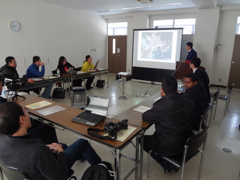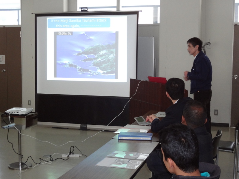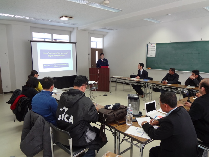 平成25年2月14日(木)14時から、岩手大学釜石サテライトにおいて、堺センター長が、独立行政法人国際協力機構(JICA)東北支部主催の「東日本大震災復興プロセス」研修の一環として、アジア諸国の政府行政官等に岩手県被災地域の防災に関する取り組みについて講演しました。