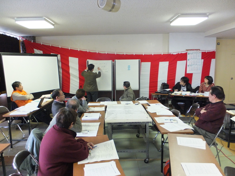 そこで、安渡町内会では、町(防災計画)・専門家との連携の下で、避難行動・避難所運営等の各種調査を通じて記録・検証し、それに基づく災害時の行動指針・手順、防災活動指針等を検討し、安渡町内会による新しい防災計画を策定することとしました。このことが、町内の防災計画づくりを先導すると同時に、コミュニティ再生の契機となることを期待しています。