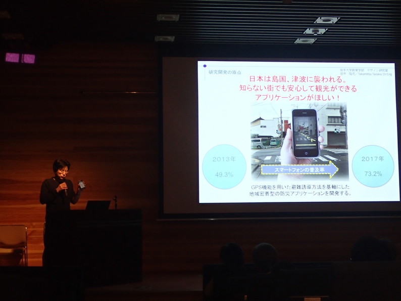 「スマートフォンを用いた津波警報時における避難誘導の試み」田中隆充(教育学部教授)