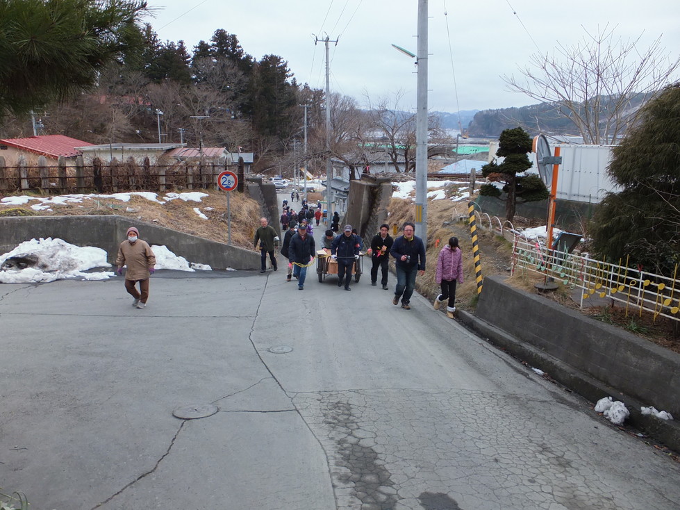 平成24年度から継続活動している大槌安渡町内会防災計画づくり検討会の活動の一環として、自主防災計画に盛り込んだ避難行動計画の検証と防災意識を高める事を目的に大槌町(町役場)・消防署・交番と連携した合同防災訓練を実施しました。当日は、寒い天候にもかかわらず約200名の住民が参加しました。