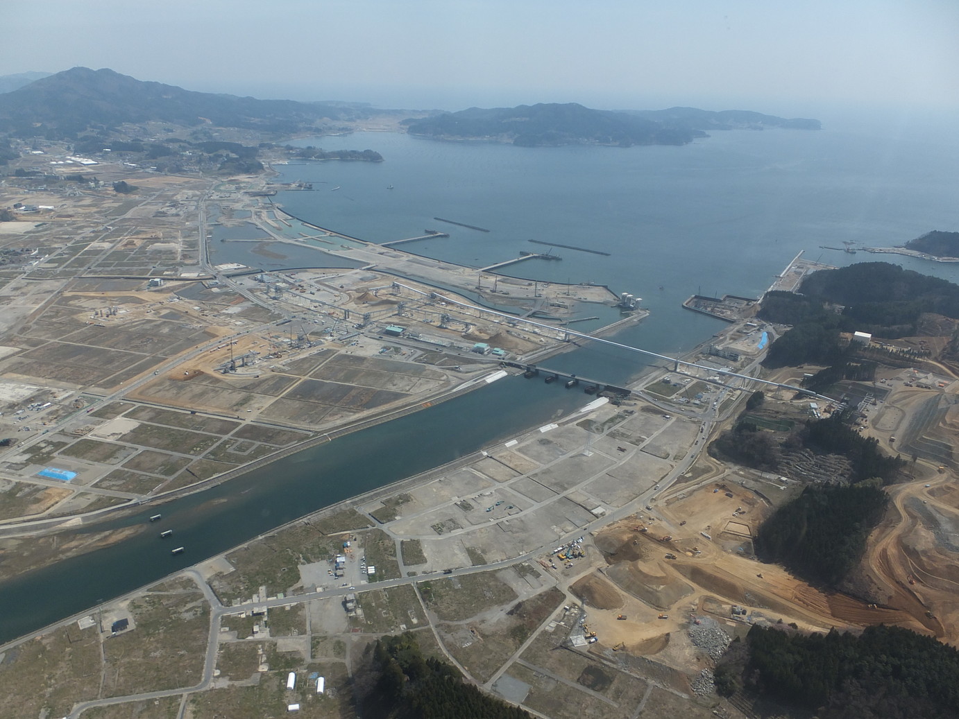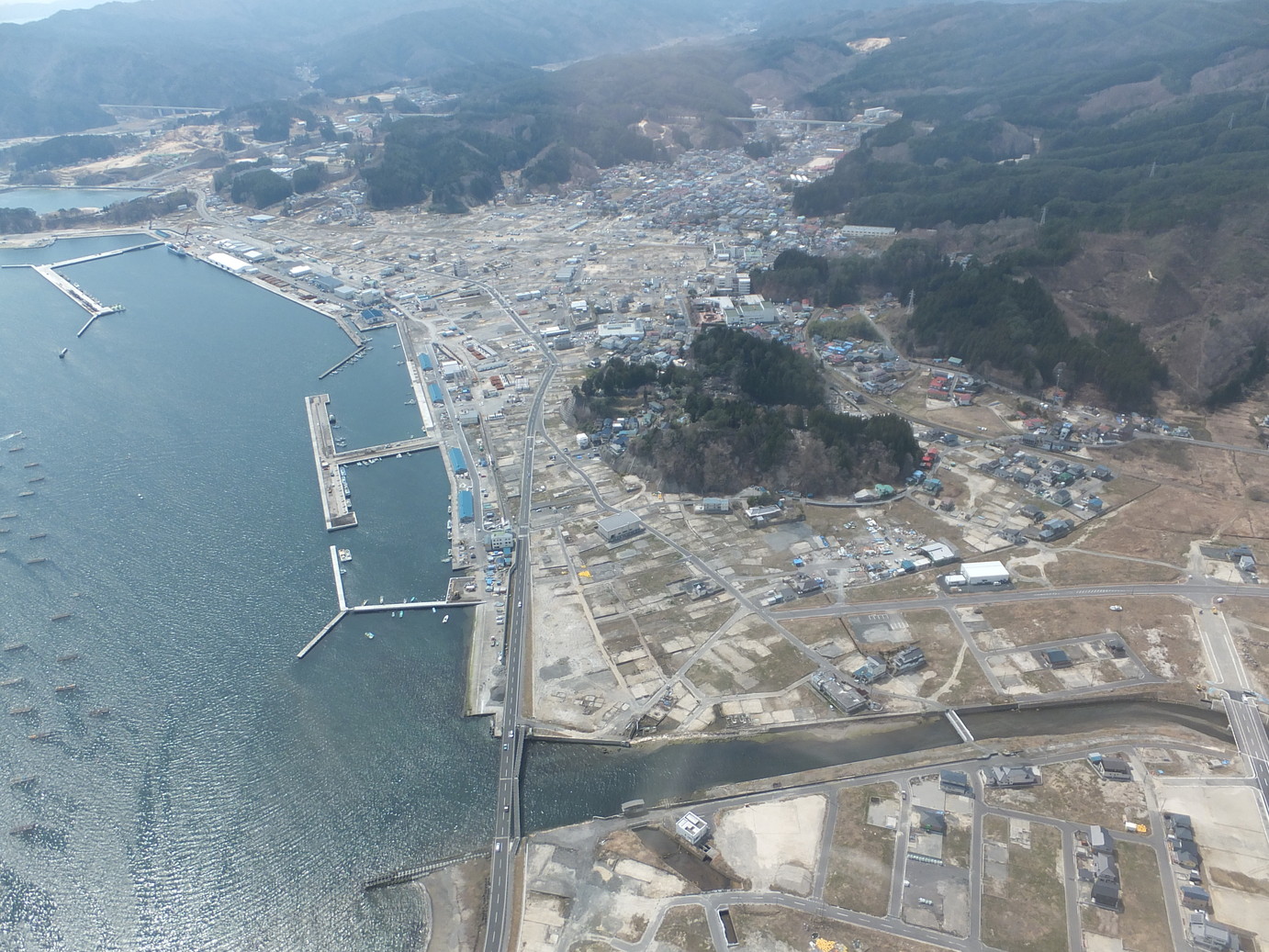 震災3年後が経過した沿岸被災地の上空視察