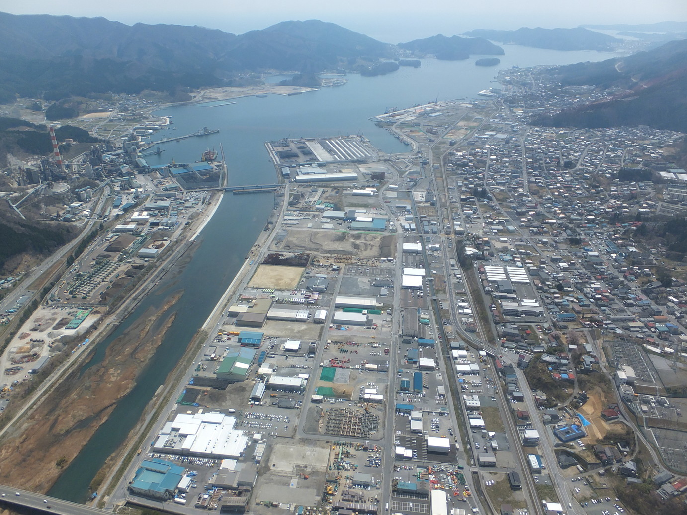北西から撮影した大船渡市              北西から撮影した陸前高田市