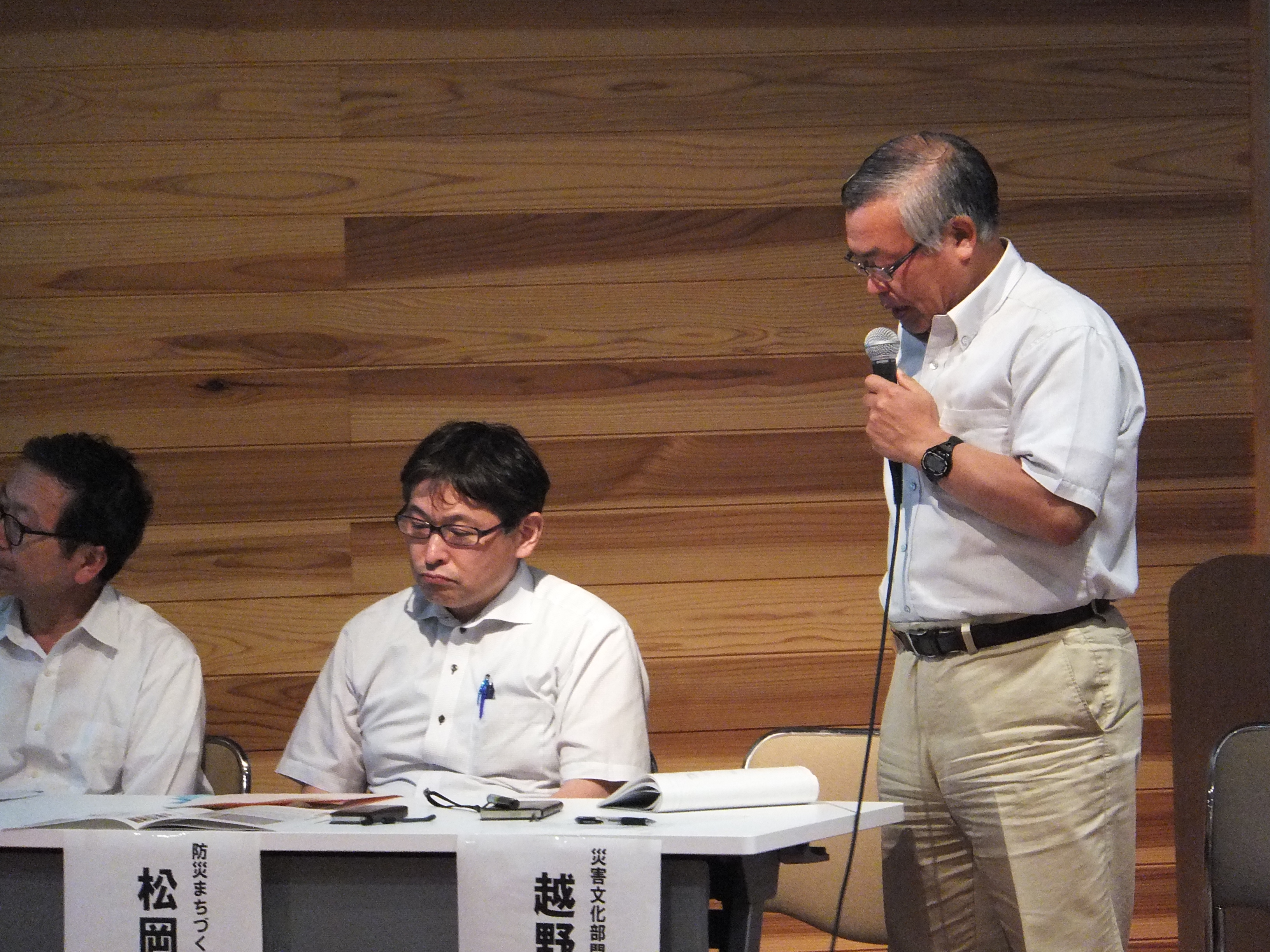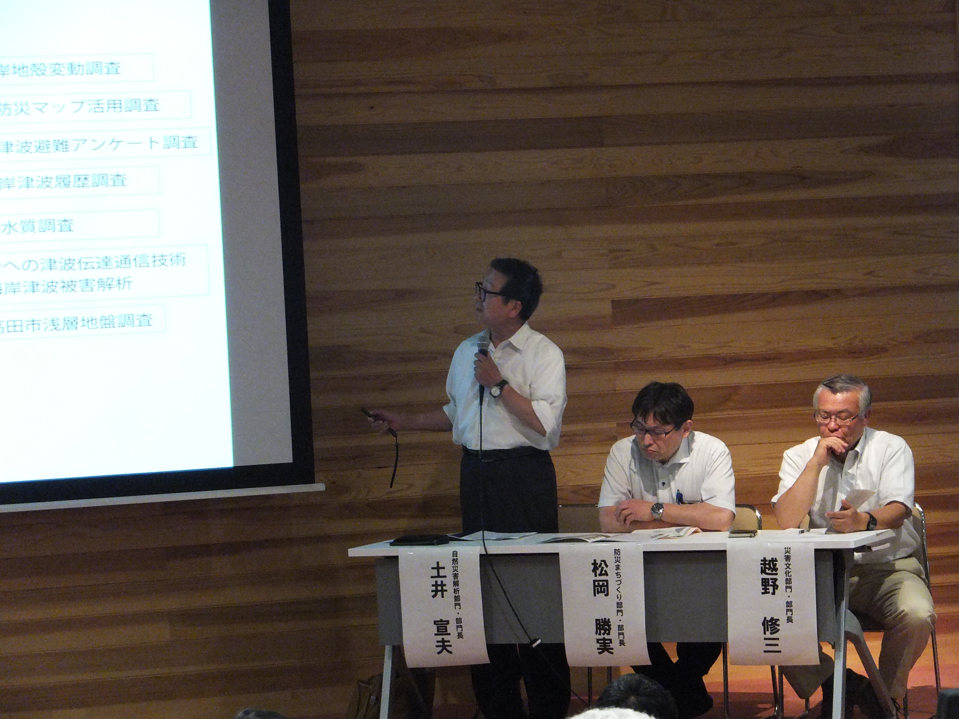 松岡部門長による防災まちづくり部門の概要紹介 麥倉教授による大槌町の自主防災計画策定支援に関する