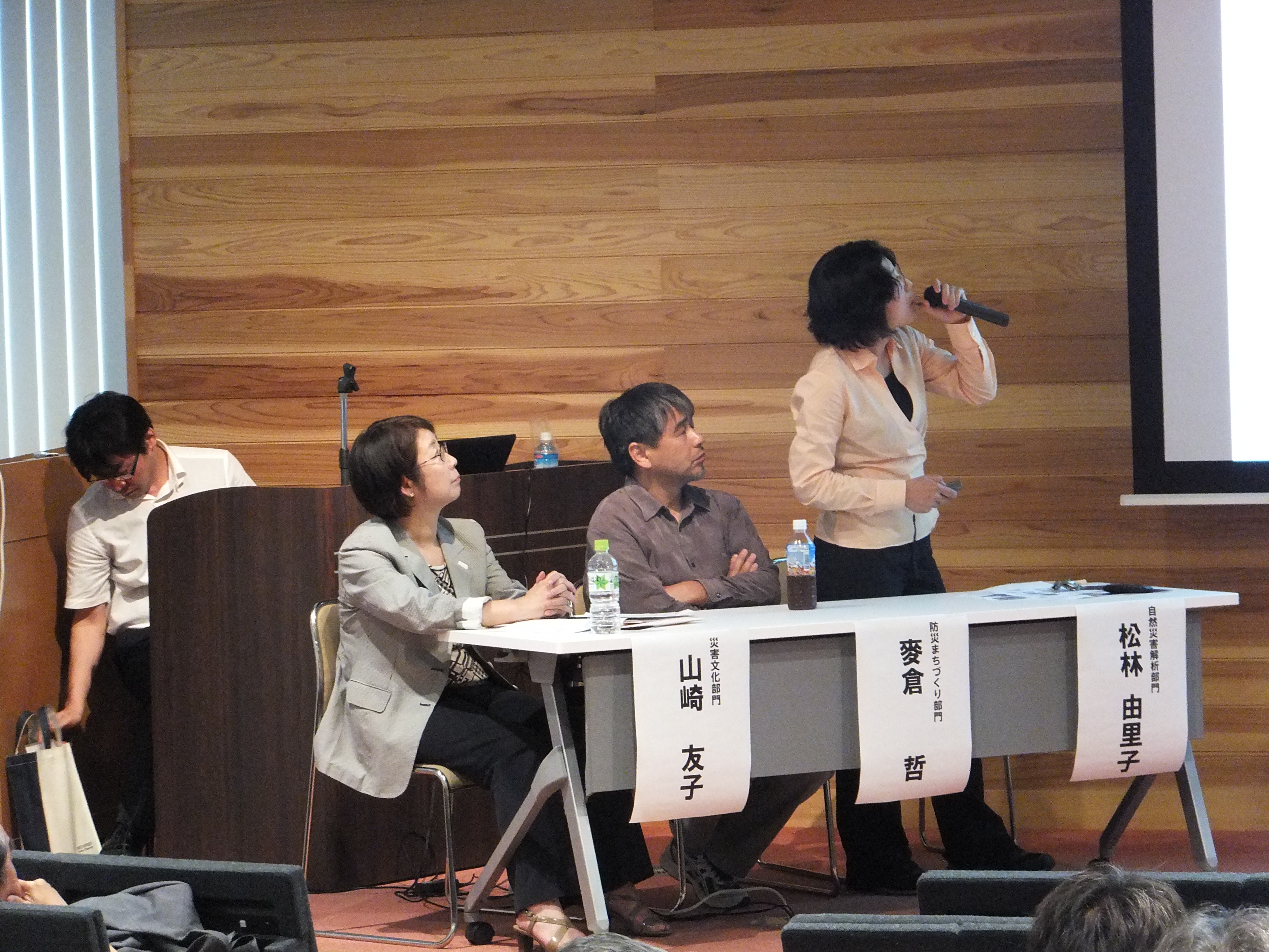 越野教授による災害文化部門の概要紹介 山崎教授による災害文化の醸成に関する活動報告
