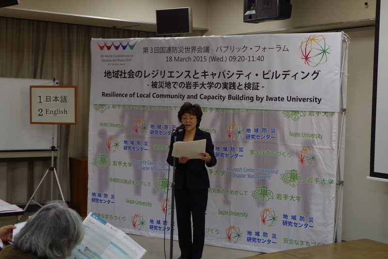 第3回国連防災世界会議 岩手大学パブリック・フォーラム「地域社会のレジリエンスとキャパシティ・ビルディング-被災地での岩手大学の実践と検証-」開催報告