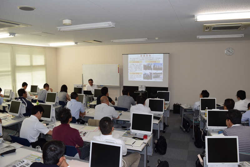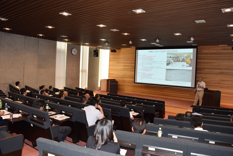 参加者は,市町村の防災担当者の他に防災に関心のある一般の方からの申し込みも多くあり,30名を越える参加者となりました。一般的なテキストでは学べない、教訓を交えた災害対応を体系的に学ぶ機会とあって、受講生からは大好評でした。