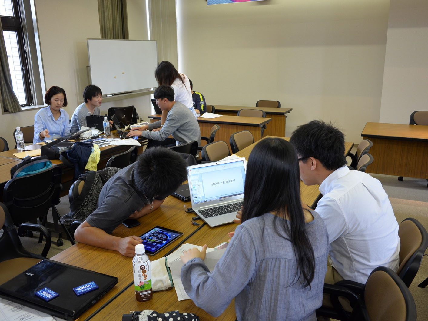 最終日は各グループとも成果発表に向けた追い込みがみられ、タイトなスケジュールのなかで英語によるコミュニケーションをこなしながら各々の提案をまとめており、交流研修に対する真剣さが感じられました。なかには独創的な考えを披露するグループもあり、成果発表会後の講評でも今回のプロジェクトによる効果を期待する積極的な意見がありました。