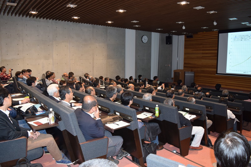 はじめに、岩渕学長による開会あいさつのあと、南センター長より当センターの取り組みについての紹介がありました。続いて、小笠原准教授、松林助教より水害の調査報告、大河原准教授、井良沢教授より土砂災害の調査報告があり、最後に広田教授から集落や住宅の再建に向けた今後の課題が示されました。