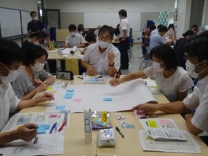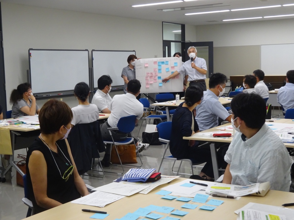 八幡平市内の小・中学校から29名の教員が受講し、目的・目標の確立(達成すべき目標の設定)、状況の把握、対策案の列挙、比較などについて活発な意見交換やまとめの作業の機会となりました。