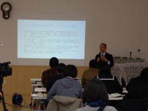 釜石市による「大震災かまいしの伝承者」基礎研修が、1月28日(日曜)に釜石市鵜住居地区の鵜住居公民館(応援センター)で行われました。この研修において、山本准教授、小笠原センター長、福留教授が講師を務めました。