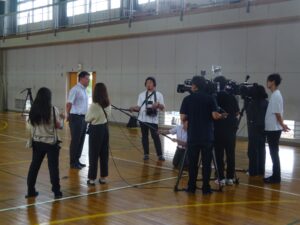 数日前に気象台から岩手山の火山の状況に関する解説情報(臨時)が出されたせいか、報道関係の関心も高く、多数の新聞社やテレビ局が取材を行い、8月23日夕方のNHK、IBC岩手放送、IAT岩手朝日テレビ、8月24日の岩手日報などで紹介されました。なお、今回の出前授業はいわての師匠派遣事業として実施されたものです。