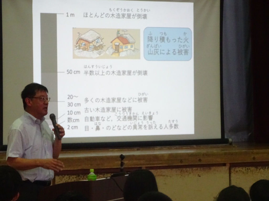 8月23日(金曜)、盛岡市立渋民中学校の全校生徒約170名を対象として地域防災研究センターの越谷信客員教授が火山防災学習に関する出前授業を行いました。