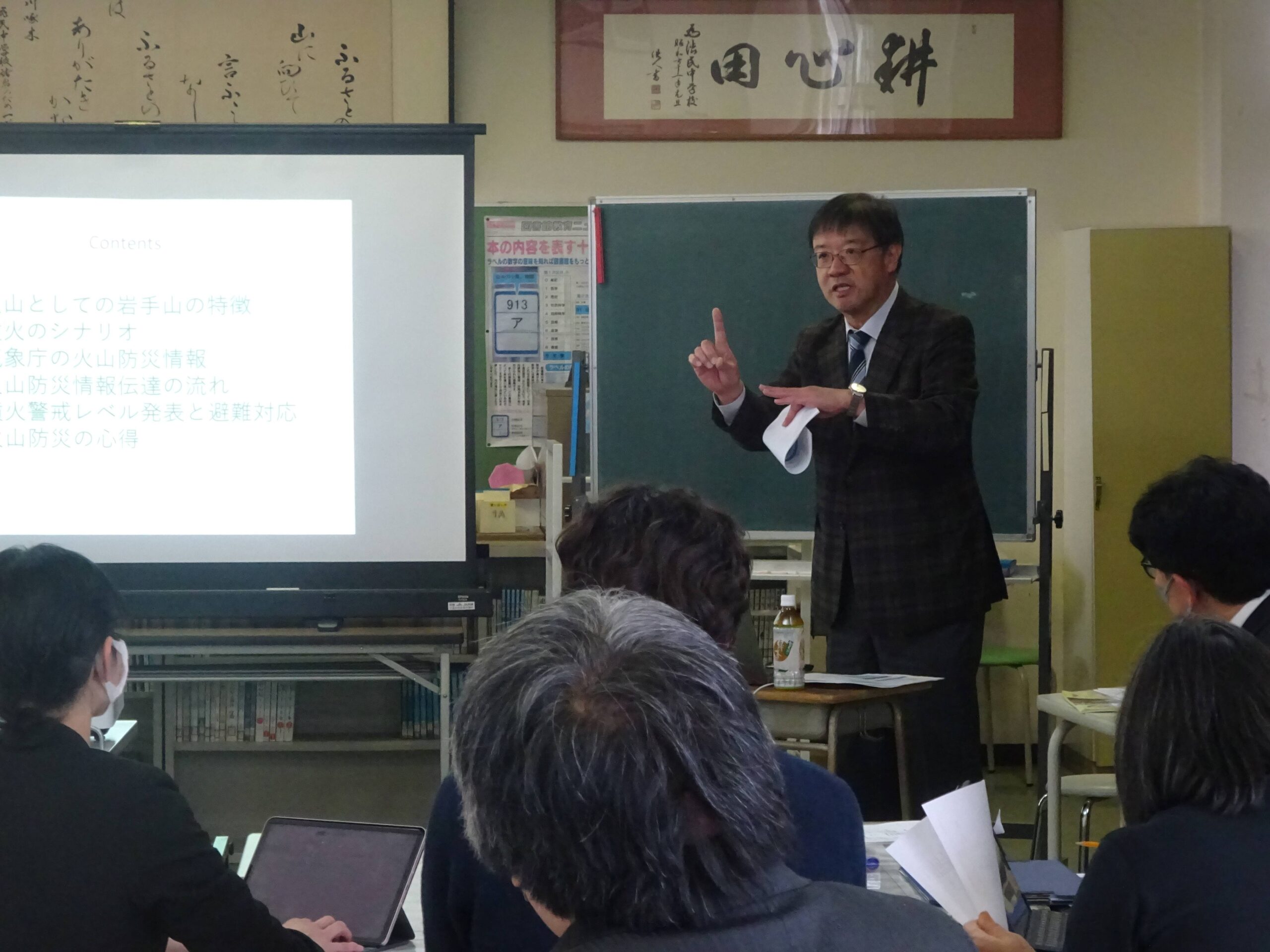 渋民中学校の火山防災に関する教職員研修会に講師として参加しました