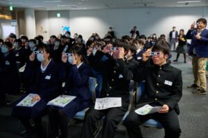 ジョブカフェいわてが事務局となり、2024年12月24日に岩手県が主催して実施された「未来のワタシゴト探究会議」において、地域防災研究センターの岡田真介准教授講演を行いました。当イベントは、県内の大学や企業を通じて、高校生を対象として岩手の「学び」と「仕事」への理解を深める試みです。講演には、200名を超える高校生が参加し、熱心に講義や企業からの説明を聞いていました。講義では,赤青メガネを使って、活断層によってずれ動いた地形を観察するなどの体験も行いました。