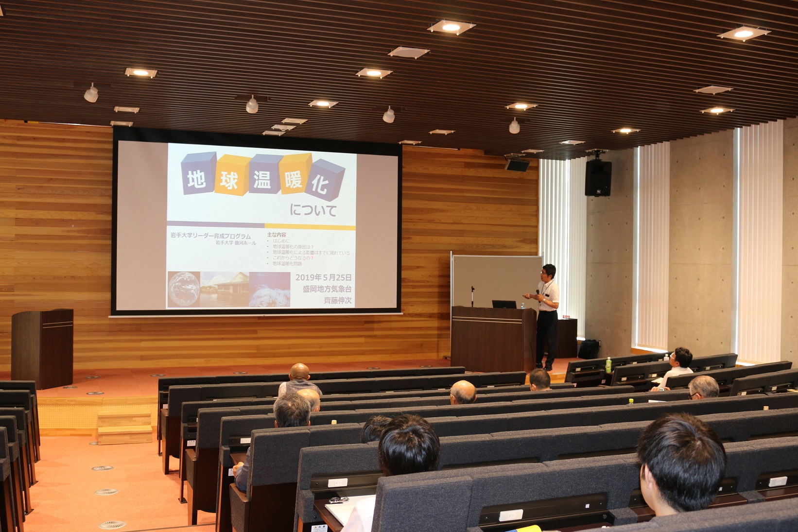 昨年度から引き続き、盛岡地方気象台から講師を派遣していただき、基礎講習「気象」(両コース合同)の講義を行いました。