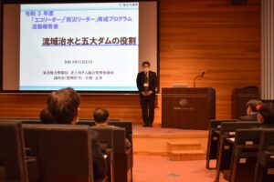 今年度は、国土交通省東北地方整備局北上川ダム統合管理事務所副所長 片野氏に『流域治水と五大ダムの役割』についてご講演いただきました。
