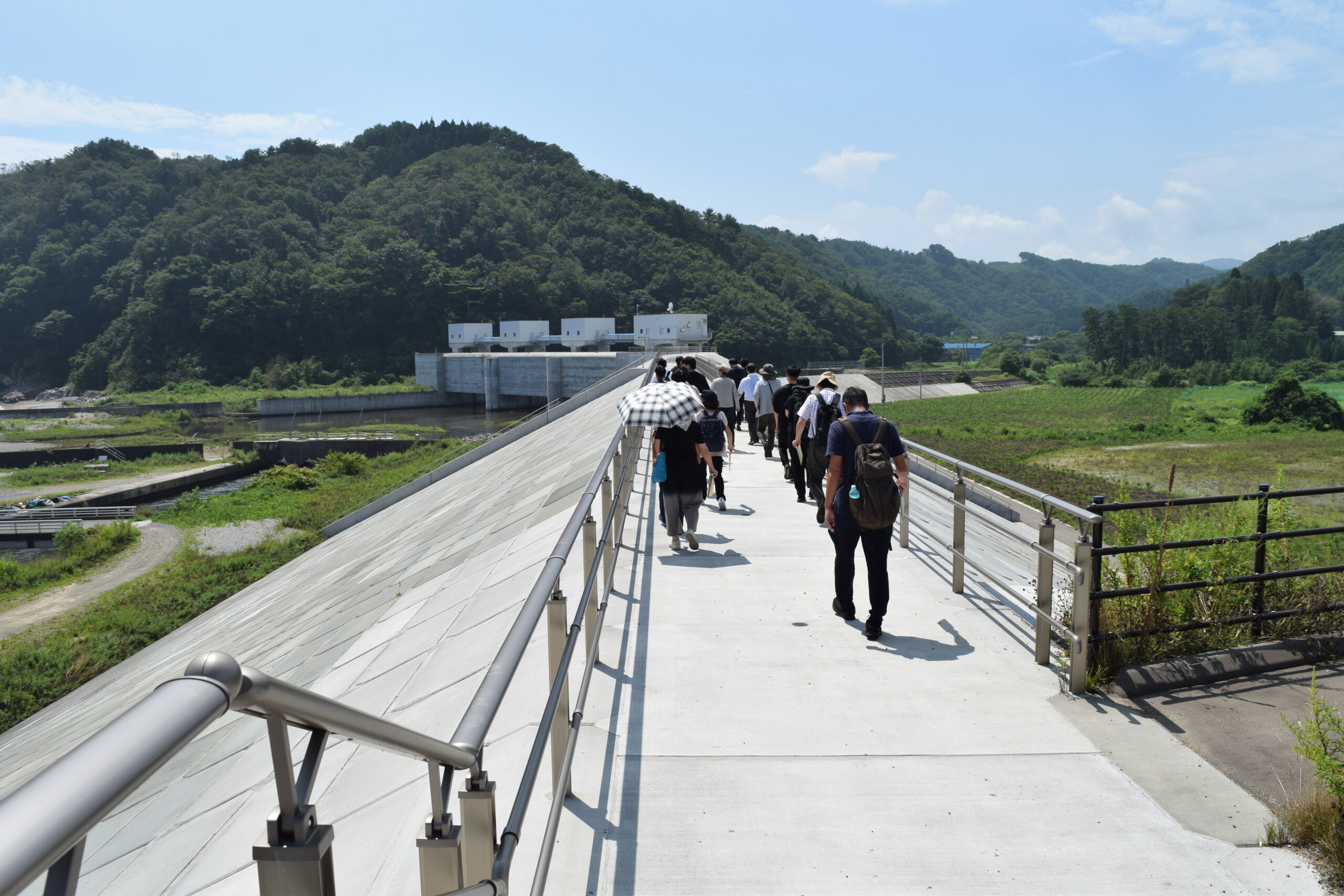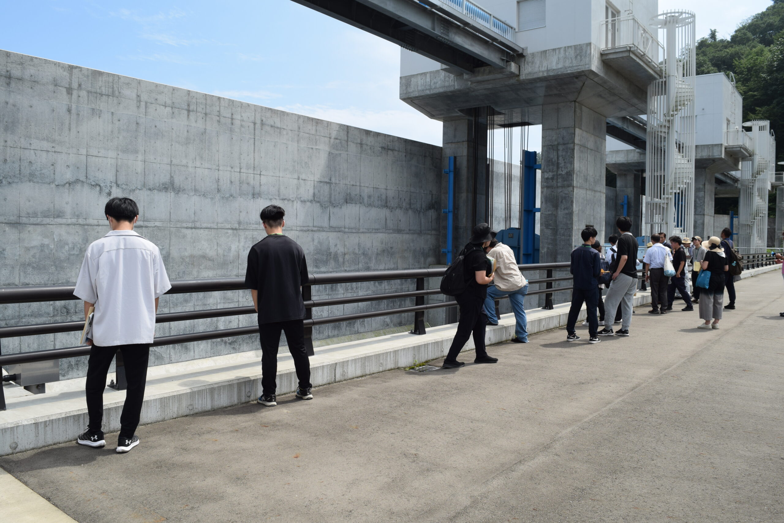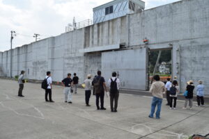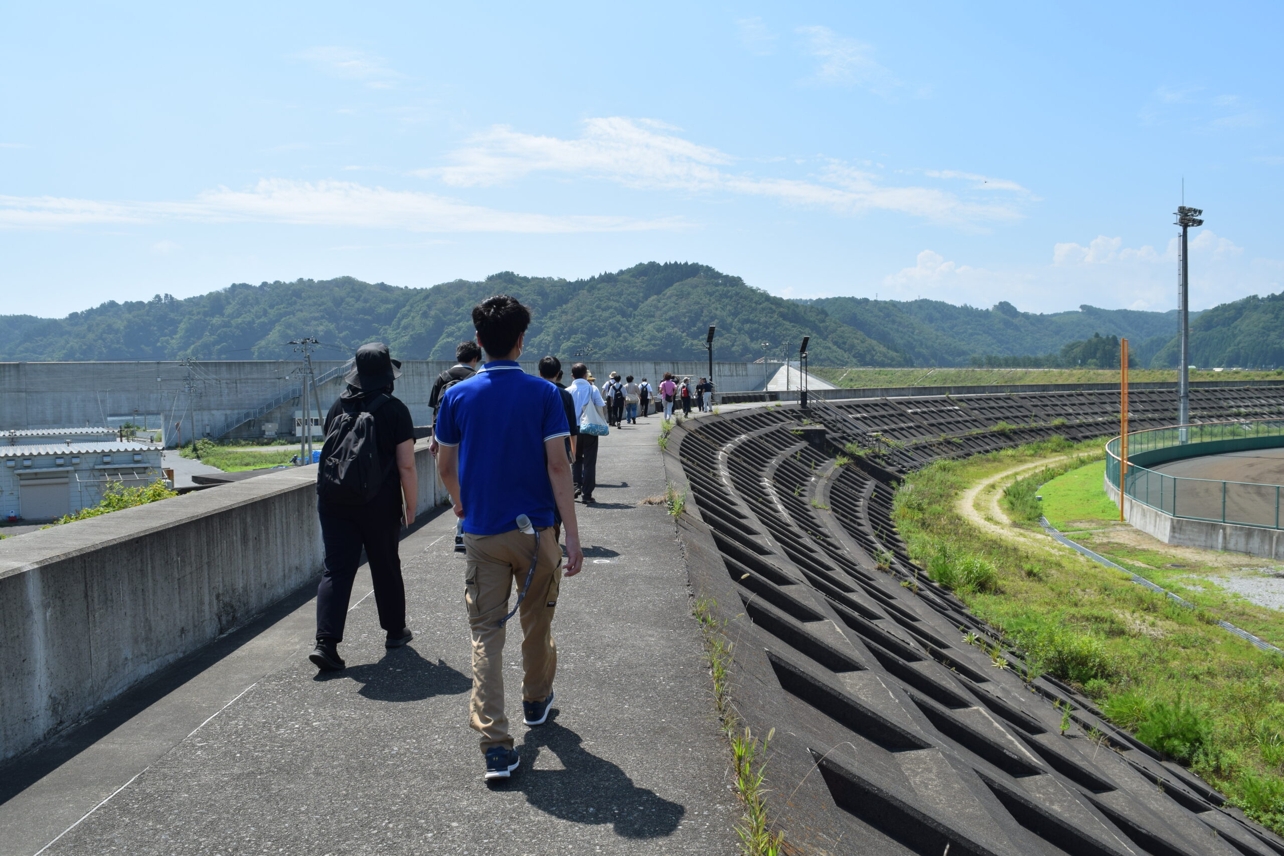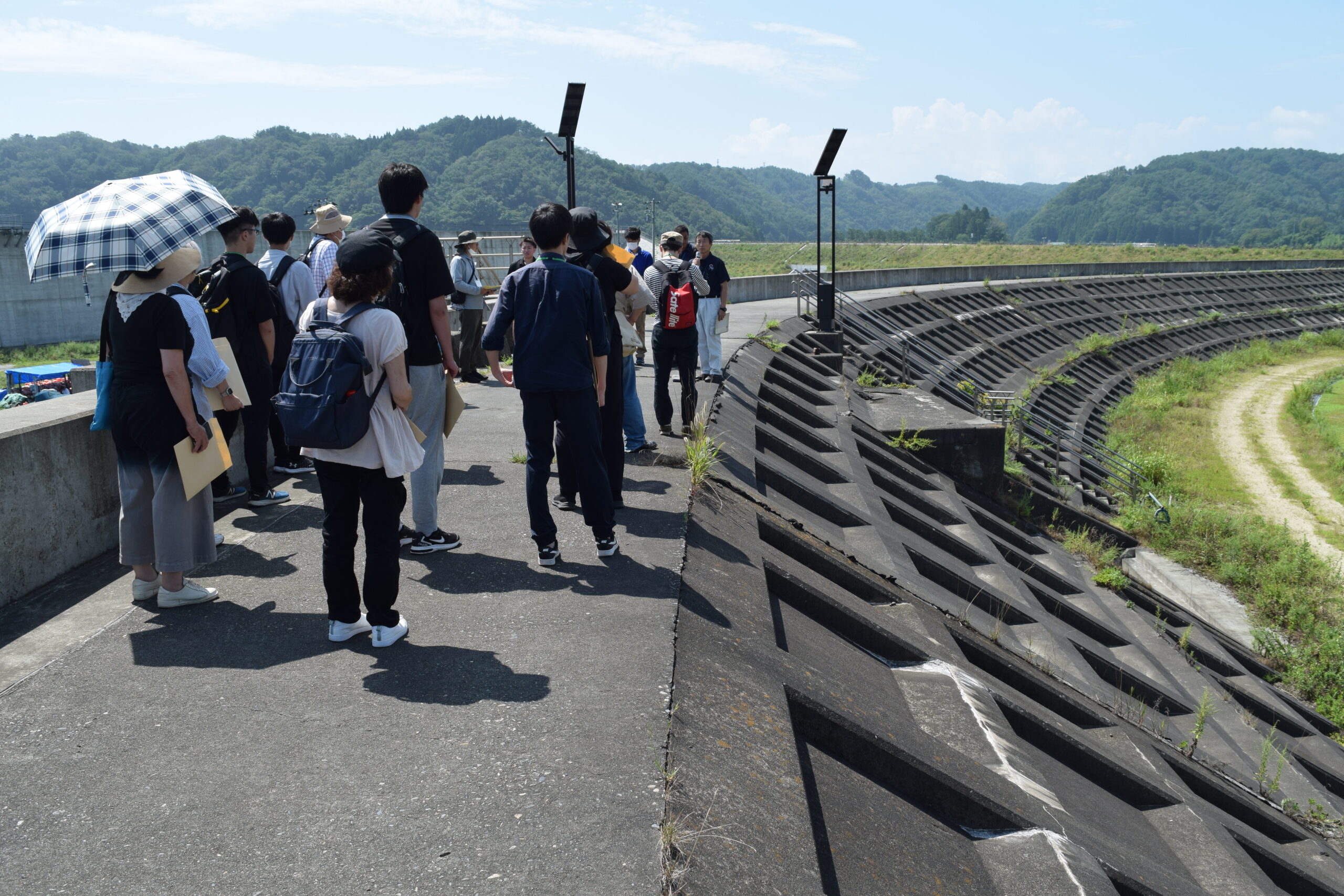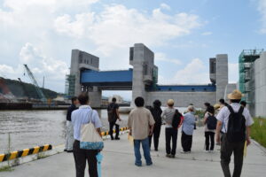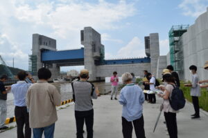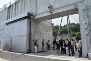 「視察研修」 2023年08月22日 8月19日(土)、視察研修を行いました。 午前中は田老海岸防潮堤、田代川水門、鍬ケ崎陸閘と閉伊川水門を、午後からは梁川ダムを見学しました。 岩手県の担当者から説明を聞き、現場を実際に視察することによって、防災施設や土木構造物の機能に関する知識を深めることができました。 猛暑の中での研修でしたが、受講生の皆さんはたいへん熱心に参加されていました。