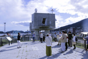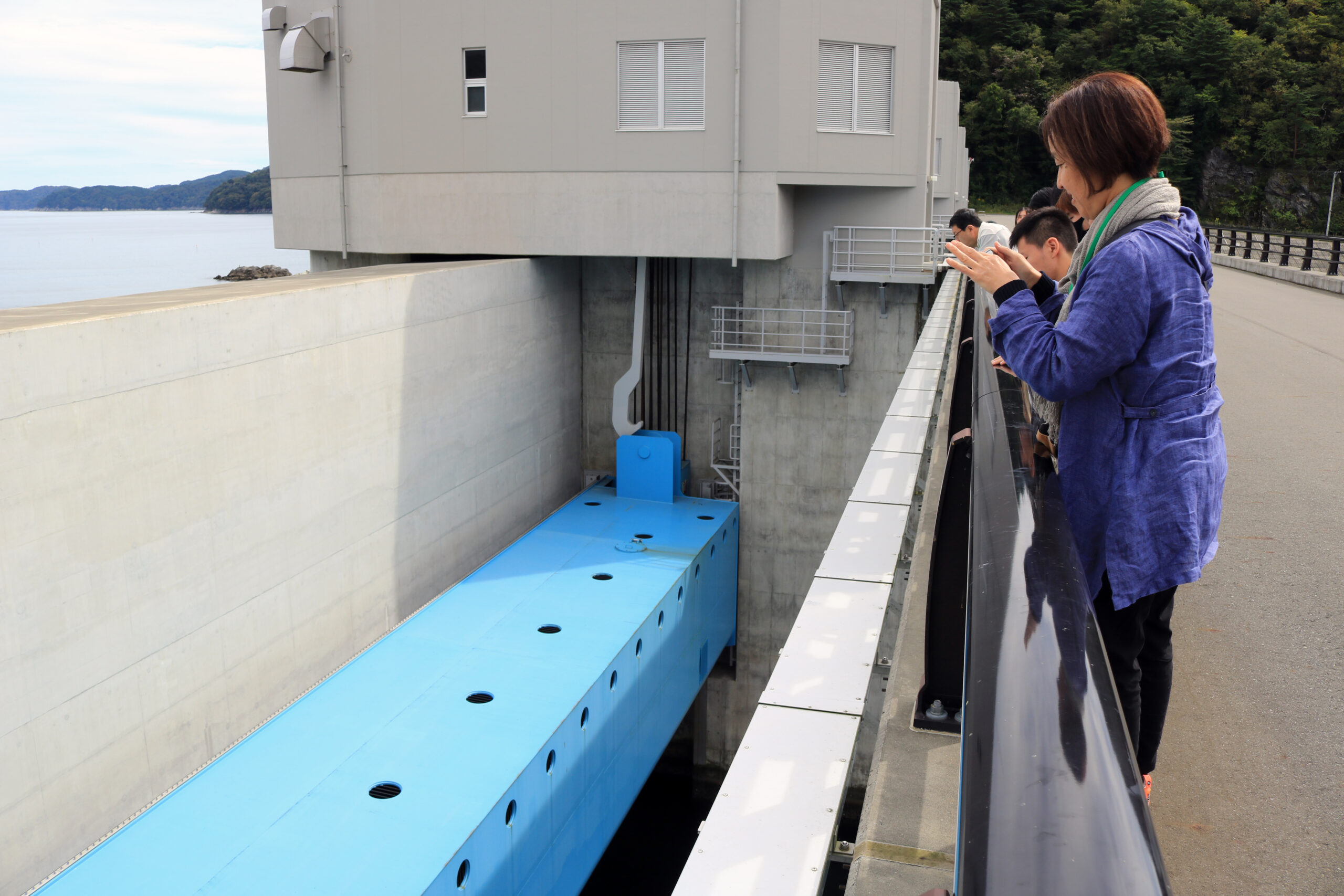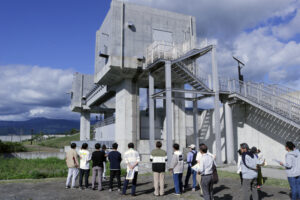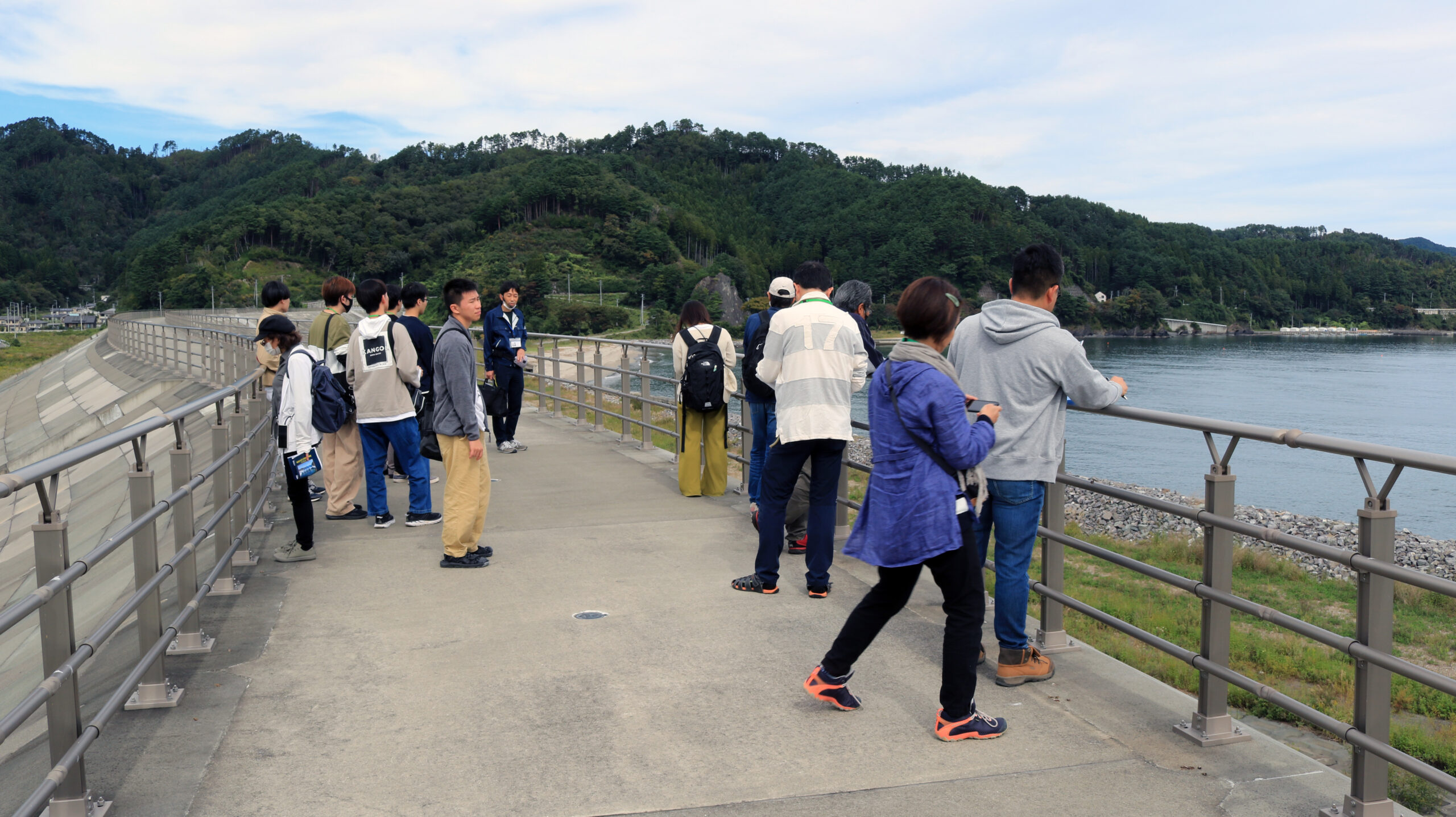 午前中は鵜住居川水門・片岸海岸防潮堤、釜石湾須賀地区公共埠頭を、午後からは大船渡のみなと公園・防潮堤・須崎川水門・慰霊施設等と陸前高田市の東日本大震災津波伝承館を見学しました。岩手県の担当者から説明を聞き、現場を実際に視察することによって、津波災害への備えとして整備された防潮堤、防波堤、水門等の機能に関する知識を深めることができました。受講生の皆さんは大変熱心に参加されていました。