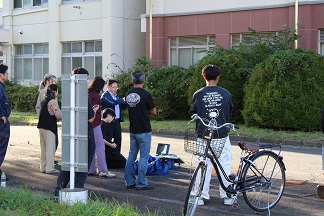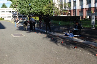 9月27日(土)地震の講義では、岩手大学構内で地震探査の野外実験を行いました。