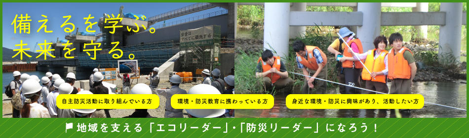 本プログラムは、環境問題や地域防災の重要性を地域、学校、職場などへ伝え、そこでの活動を牽引するリーダーを育成することを目的としています。